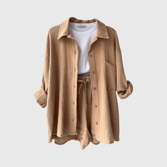 Conjunto elegante de dos piezas en algodón y lino para mujer