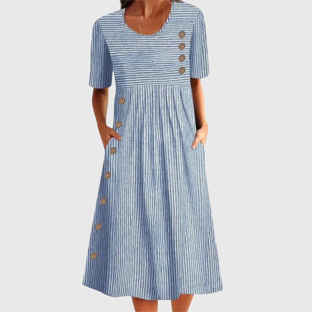 El vestido Lenka combina una sensación de ligereza con una estética de simplicidad elegante. Su diseño favorecedor y su corte holgado lo hacen versátil para la oficina o para un paseo por la ciudad.