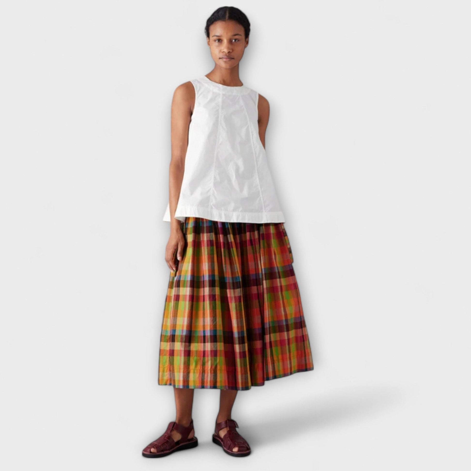 Nuestra falda plisada de rayas coloridas aporta un aire fresco y versátil a tu fondo de armario, combinando un estampado alegre con una silueta clásica. Diseñada para un estilo casual-chic, es fácil de integrar en looks diarios tanto elegantes como desenfadados.