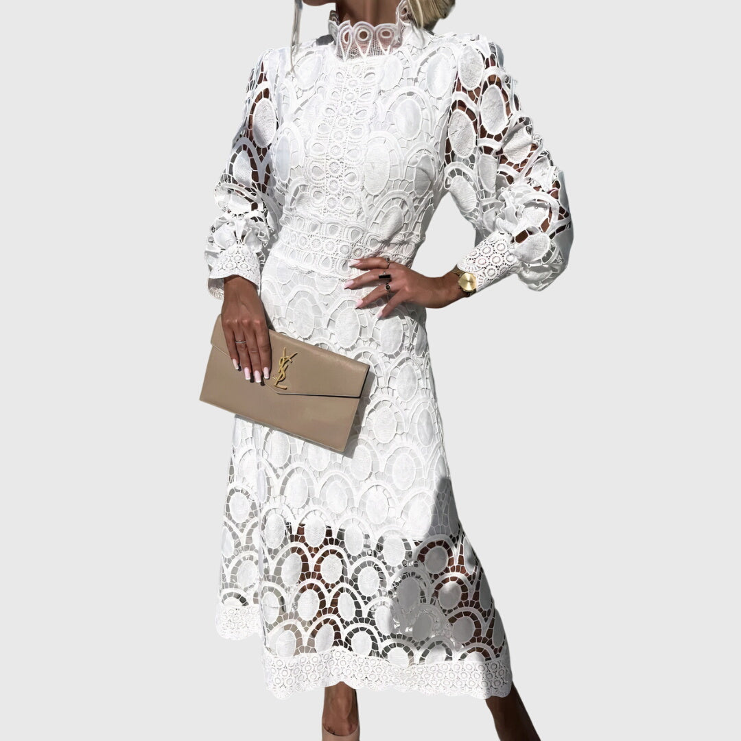 Detalles atemporales: Las mangas largas ligeramente abullonadas, los adornos delicados y el cuello alto crean un aspecto refinado y versátil para distintas ocasiones.