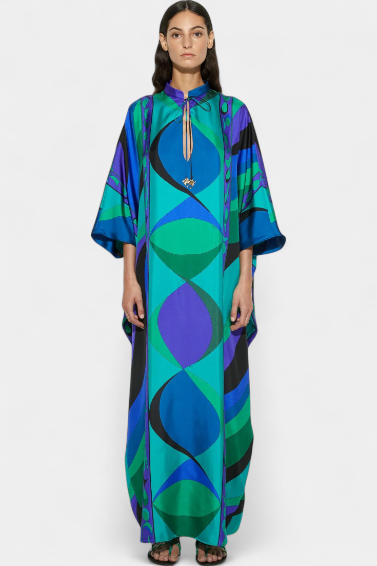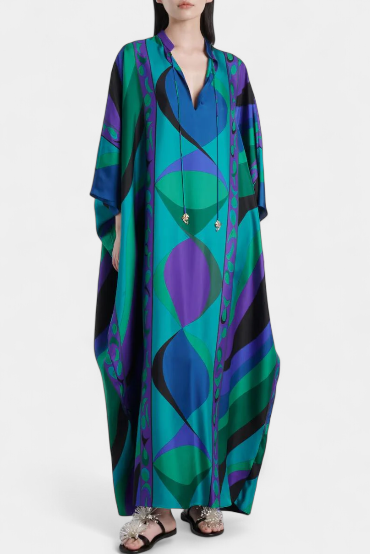 El Capitán Fiorella ofrece elegancia y una sensación de libertad en cada paso, pensado para quienes buscan una prenda con estilo y confort. Su silueta fluida y holgada abraza el cuerpo y permite moverse con gracia, mientras el estampado Iride, con espirales psicodélicas, aporta un distintivo toque artístico. Ideal para escapadas junto al mar, noches creativas o momentos en los que el arte se viste.